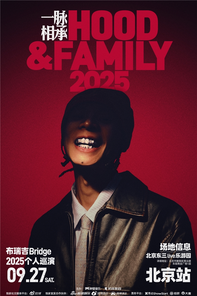 布瑞吉新专辑《一脉相承Hood&Family》有着极强的音乐性与故事性,用虚实结合的艺术手法展现了“在传承中不要遗忘过去,在传承中永远保持革新,在传承中循环更替,守住自己的根”的专辑概念,跻身网易云音乐2025上半年最佳中文说唱榜单TOP10。《一脉相承Hood&Family》布瑞吉Bridge2025个人巡演足迹遍布重庆、成都、上海、杭州、广州、深圳、北京,呈现出有着最纯正本土表达、最燃炸感官体验的说唱现场,未来还会带着“第一现场”去到更多地方。